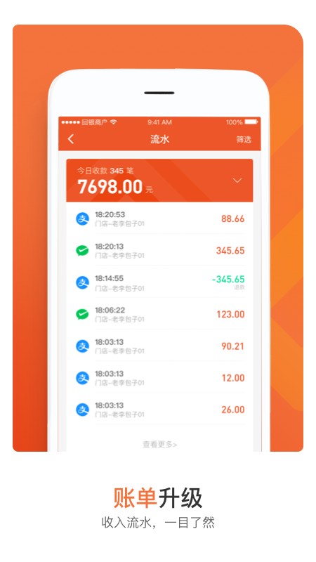 2.回银商户APP:提供完善的收款明细查询功能,支持按日/周/月查看资金流水,自动生成可视化对账报表。这款全国百万商家都在使用的生意帮手,不仅能记录基础交易数据,还能智能分析顾客消费习惯,帮助商家优化经营策略。通过手机就能完成门店的日常经营管理,操作简单便捷。