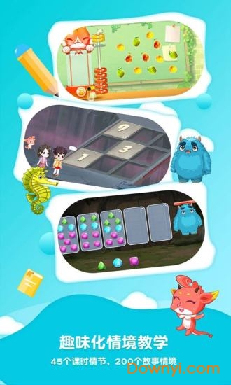 2.巧妙创编学习情境:情境设计兼具趣味性和教育性,如"时间管理"单元通过安排恐龙学校作息表来认识钟表;"分类统计"化身精灵商店理货员。所有场景都经过儿童心理学专家审定,确保既吸引注意力又准确传递数学本质。