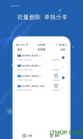 -完善的音频管理系统,支持对保存的音频文件进行批量管理,包括删除、重命名、分类存储等操作;