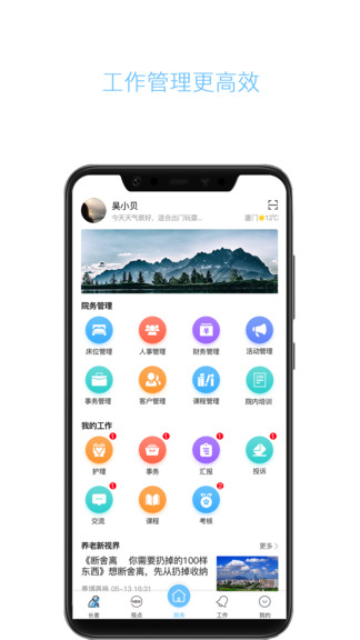 2、随时随地掌握机构运营情况。移动端提供全面的数据看板,包括入住率、服务满意度、财务收支等关键指标,管理者在外也能随时了解机构运营状况,做出科学决策。