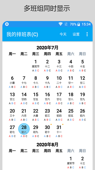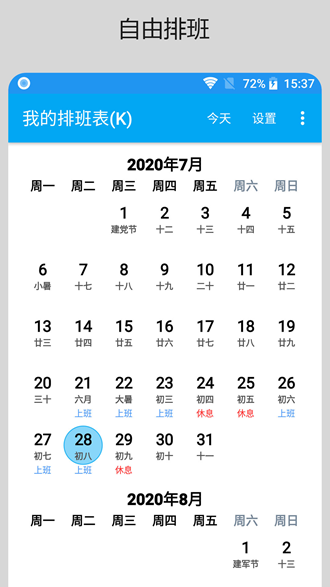 个性设置,可自定义的调节不同班别的颜色,让你对个人的排版一目了然