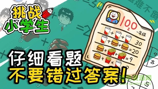 《挑战小学生》是一款超烧脑的解谜闯关游戏,内含多样化的题型设计,包括巧移火柴棍、趣味文字谜、脑筋急转弯等,全方位挑战你的脑洞与逻辑思维。游戏不仅能够开发大脑潜能,还能帮助你跳出思维局限,用全新的视角解决问题。每一关都经过精心设计,难度循序渐进,让你在挑战中不断突破自我。无论是休闲娱乐还是锻炼脑力,这款游戏都能满足你的需求。快来加入这场脑力风暴,一起燃烧脑洞吧!