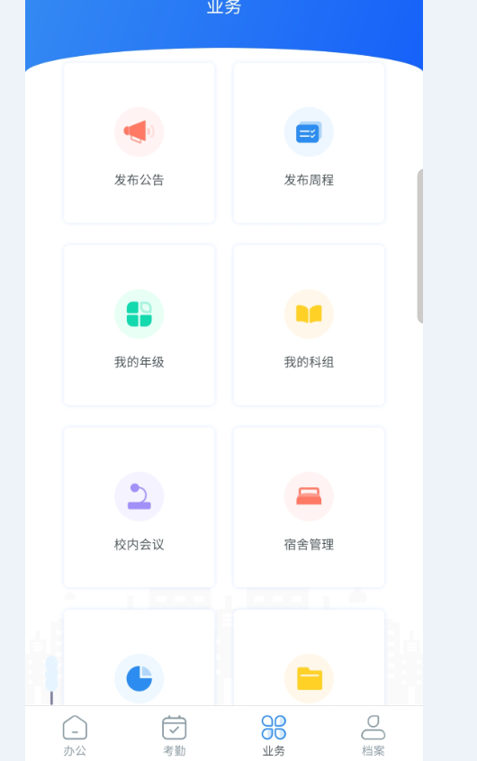 我的班级,我的课表:支持多维度课表查询与智能调课申请,自动冲突检测确保教学安排合理性。校园报修,流程申请:实现报修工单全流程电子化跟踪,支持图片上传和维修评价。学校公告,查看周程:分级权限的公告发布系统,重要通知可设置已读回执。办公邮件,数据:集成安全邮件系统,支持附件加密和电子签章功能。新增智能考勤模块,通过人脸识别技术实现无感考勤;数据分析中心提供多维度报表生成,涵盖教学质量评估、学生成长轨迹等核心指标;移动审批功能让各类申请流程审批不再受时空限制。