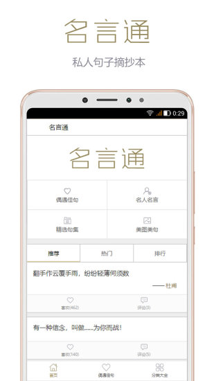 6、在这里有着各种各样的名人警句,系统化的分类和标签让您能快速找到所需内容,建立知识体系。
