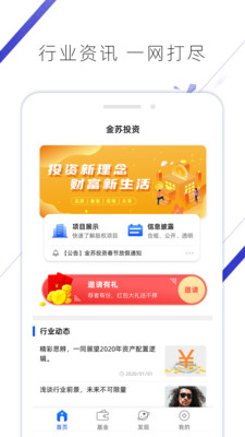 金苏投资APP是一款专业高效的投资理财工具,致力于为用户提供全面、及时的市场动态和投资资讯。通过智能化的信息推送和精准的数据分析,帮助投资者轻松把握市场脉搏,抓住最佳投资时机。平台整合了私募股权、行业研究等多元化服务,让用户足不出户即可享受一站式投资体验。无论是新手小白还是资深投资人,都能在这里找到适合自己的理财方案,实现财富增值目标。