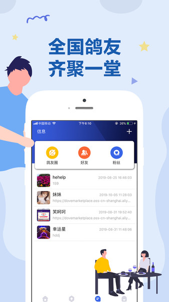 3、软件设有专门的交流社区,方便用户分享快乐时光、交流饲养经验,结识志同道合的鸽友。