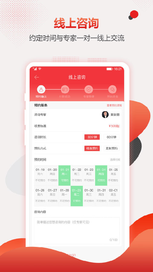 【智库大厅】汇聚各领域顶尖专家资源,提供品牌战略、资本运作、管理咨询等12大类专业服务。用户可通过视频连线、线下约见、邮件咨询等多种方式,获得包括华为前高管、知名投资人等在内的专家团队一对一指导。系统智能匹配专家档案与用户需求,支持预约评价体系,确保咨询服务的高效性与专业性。