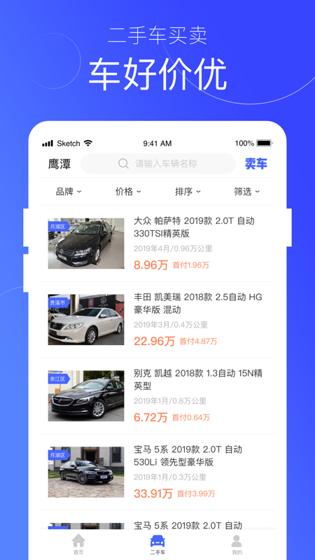 二手车:打造鹰潭地区规模最大、信息最透明的二手车交易平台。提供专业车辆检测服务,生成详实的检测报告,杜绝事故车、泡水车。支持在线估价、预约看车、金融贷款等全流程服务,买卖双方可直接沟通,平台全程担保交易资金安全。