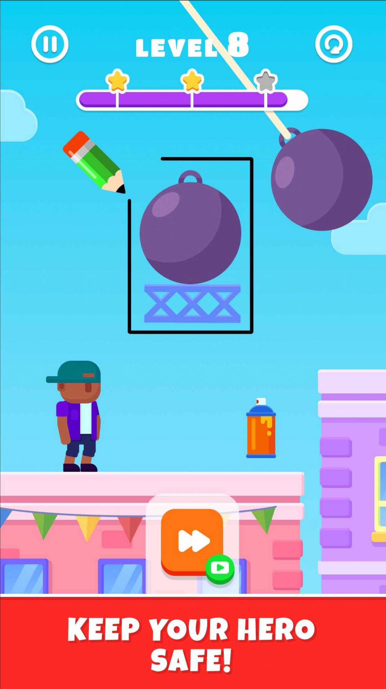 1、游戏中需要充分发挥玩家的智慧,通过绘制各种线条来解开精心设计的谜题,最终成功解救被困的英雄。每个谜题都需要独特的解决思路,考验玩家的创造力。