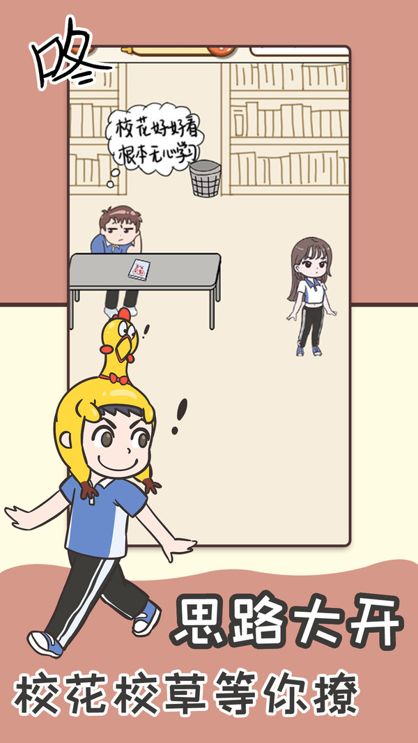 《不要挂科之救赎》是一款融合搞笑元素与脑洞解谜的创意游戏。主角布瓜是个总在挂科边缘徘徊的倒霉学渣,从考试迟到、写错字到被同学干扰,各种奇葩状况都会导致他挂科。玩家需要通过观察场景细节,利用道具解决突发事件,比如用假发遮住主任的秃头,或是穿上女装应对同学的邀约。游戏用夸张的漫画风格呈现校园生活,每个关卡都藏着令人捧腹的隐藏彩蛋,让解谜过程充满惊喜。