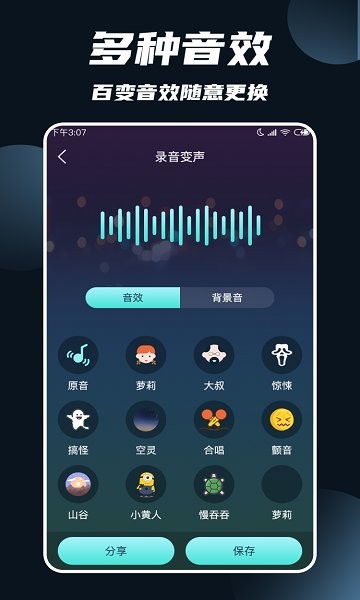 -内置多种音效,瞬间改变声音,效果自然逼真。