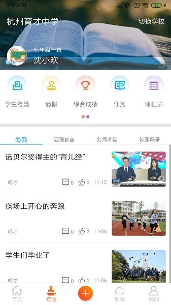 1、家长可以在使用了这款软件之后能在手机上看到自家的宝贝在学校的动向了,知道他的吃饭怎么样,午休怎么样,什么时候离校了等等。平台采用物联网技术实时同步校园数据,通过AI分析生成行为报告,帮助家长更科学地了解孩子的校园生活状态。