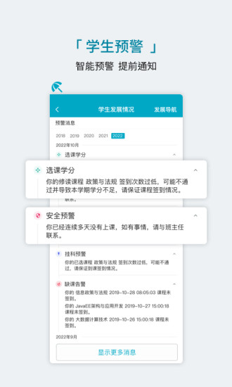 学程APP以"学生是成才发展主体"为核心理念,深度结合高校专业人才培养方案,打造智能化教育管理生态系统。平台通过建立科学的学生发展评估模型,既能够正向激励学生参与学术竞赛、社会实践等有益活动,又能智能识别并预警消极行为。其特色在于运用大数据分析技术,为教师提供学情可视化工具,解决传统教育中反馈滞后、管理粗放等痛点。同时依托云计算能力构建校级管理驾驶舱,使学校能实时掌握人才培养动态,显著提升管理精细化程度,最终形成学生个性化发展、教师精准化教学、学校科学化决策的良性循环。