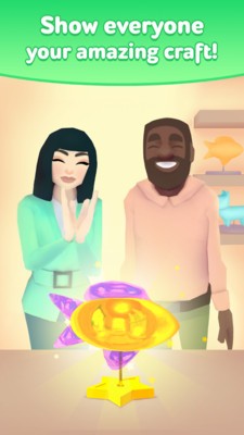2、游戏采用清新可爱的3D画风,简洁的界面设计搭配明亮的色彩,营造出轻松愉快的创作氛围,独特的玻璃塑造玩法带来全新休闲体验;