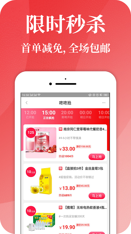1.限时抢--每日限时疯抢各类秒杀好货等你买!精选爆款商品,价格低至1折起,手慢无!