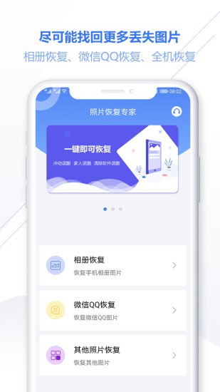 4.相册恢复、微信QQ恢复、全机恢复,最大限度找回丢失的图片:支持从20+种数据源恢复,包括系统相册、第三方应用缓存、SD卡等,全面覆盖各类数据丢失场景。