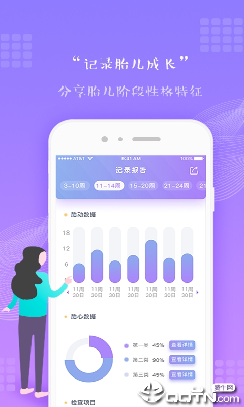 "记录胎儿成长"功能让孕妈妈可以上传B超照片、记录胎动次数,建立专属的孕期日记。系统会自动生成成长时间轴,记录宝宝每个重要发育阶段。
