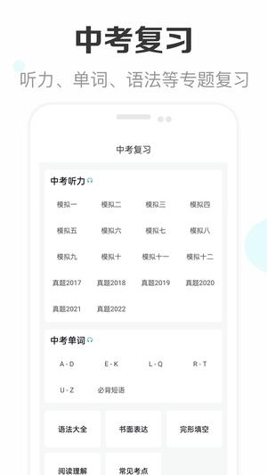 收录近十年中考英语听力真题,保持考场原始录音效果,帮助学生熟悉考试场景。针对中考重点难点,提供语法专题、单选题型、写作技巧等专项训练。整理历年中考易错题集锦,配有详细解析,避免常见错误。精选中考核心2000词,按考频排序,支持跟读背诵。中考听力模拟练习完全参照真题标准,从发音清晰度、语速到试题难度都力求还原真实考场环境。