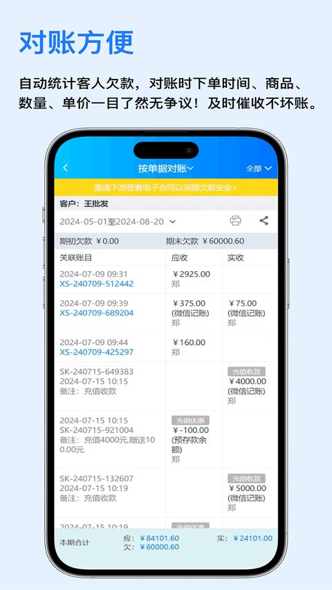 智能对账系统升级,自动匹配最佳对账周期;打印模板支持更多自定义选项;欠款统计规则优化,数据准确性提升至99.9%。