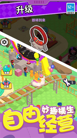 2、非常的操控,游玩起来更加自信,玩家需要自行经营游乐场,让世界各地的游客都来玩家的游乐场游玩。游戏操作简单直观,触控反馈精准灵敏。完善的教程系统帮助新手快速上手,而深度的经营系统则能满足硬核玩家的需求。玩家可以通过社交媒体分享自己的游乐场,吸引更多虚拟游客前来参观游玩。