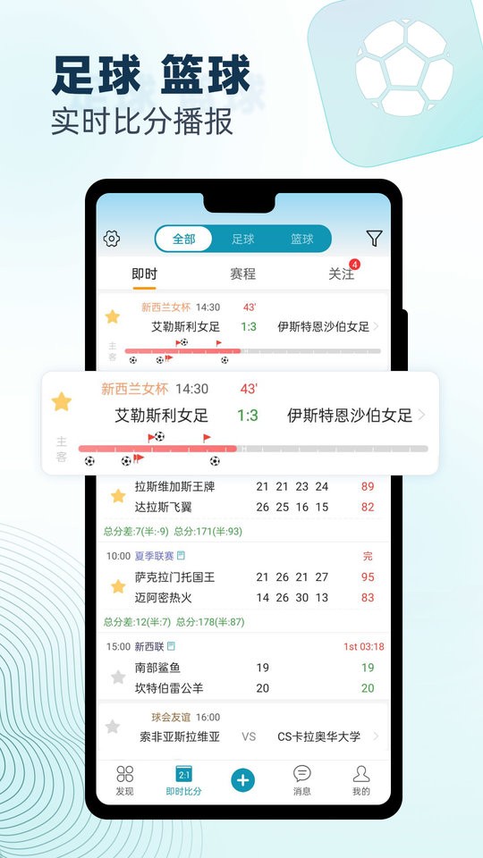 【足球】比分实时更新系统,汇聚全球大小赛事数据,动态分析功能让用户一手掌握比赛走势;