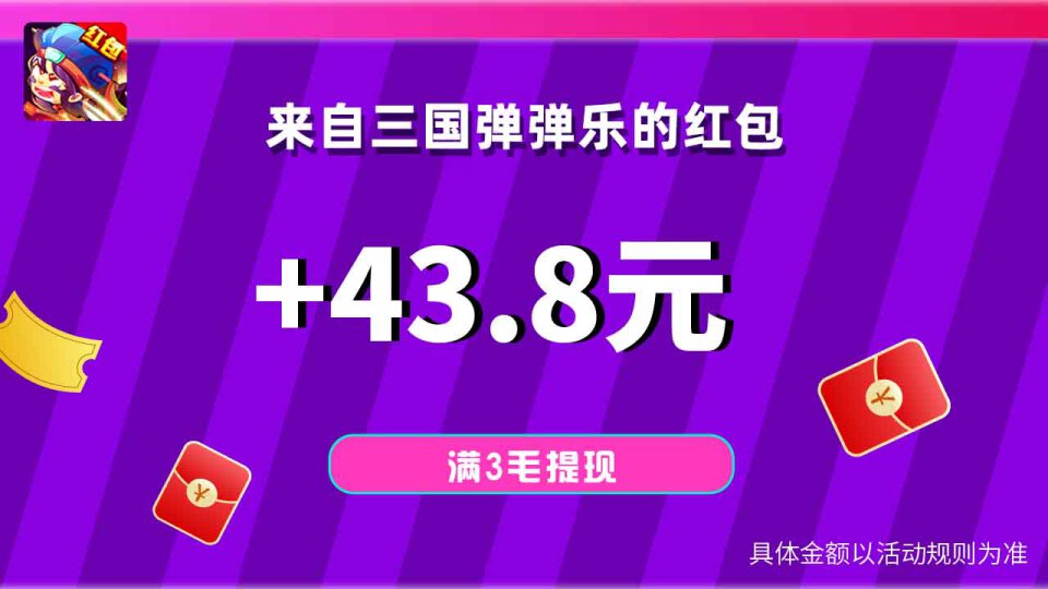 三国弹弹乐红包版是一款融合了消除玩法与红包奖励的休闲游戏,以三国题材为背景,玩家可以通过完成各种任务获取收益。游戏提供了签到、闯关、观看视频等多种赚钱方式,确保玩家每天都能获得稳定收入。最吸引人的是它的秒提现功能,让玩家可以随时将赚取的奖金提现到支付宝账户,真正做到边玩边赚。游戏操作简单易上手,丰富的武将系统和道具搭配增加了策略性,无论是想休闲娱乐还是赚点零花钱,这款游戏都能满足你的需求。