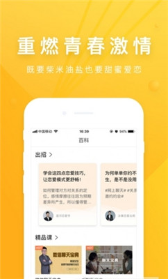 2、海量的靠谱恋爱技巧轻松学习哦。平台原创的"恋爱进阶课程",分12个阶段系统提升你的情感能力。每月更新的"实战技巧"专栏,分享最新最有效的恋爱方法。