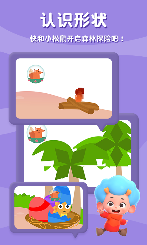 -图形匹配:通过趣味互动游戏,让孩子手眼并用,在丰富的几何场景中认识各种形状,培养空间思维能力。