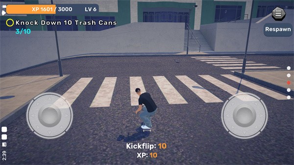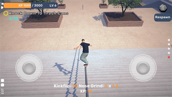 2、屏幕右边设有特技按键区,包含ollie、kickflip、grind等基础动作按钮,通过组合按键可以施展超过50种专业滑板技巧。