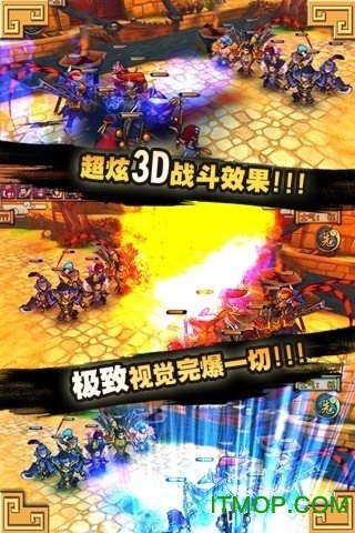 ★完爆一切的视觉体验:游戏采用纯3D技术打造,Q版画风精致可爱,战斗场景华丽震撼,武将技能特效炫酷夺目,为玩家带来极致的视觉享受。