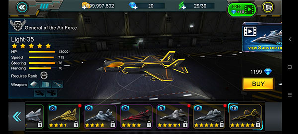 5、玩家可以通过战斗提升等级解锁更强大的战机,游戏内经济系统让玩家通过完成任务获得资金购买新装备。