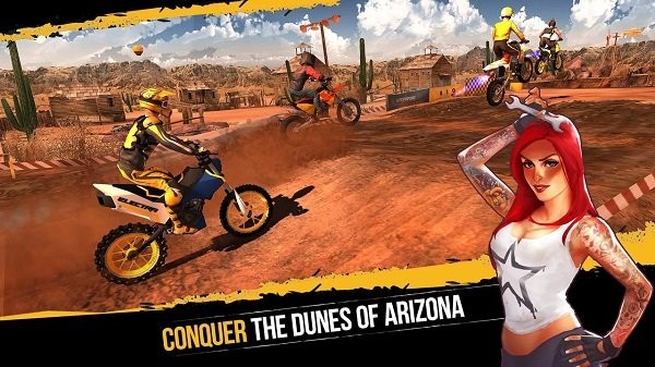 2、游戏采用经典的摩托题材,展现泥地的乐趣,精心设计的泥浆飞溅效果和轮胎痕迹让比赛过程更加真实生动。