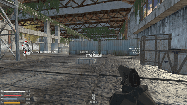 2、添加了背包系统,15种枪械,食物系统,可以建造帐篷和篝火过夜!背包采用重量体积双限制系统,合理搭配装备很重要。新增的M249轻机枪需要完成佣兵任务解锁,篝火可以烤制增加饱食度的特殊料理。