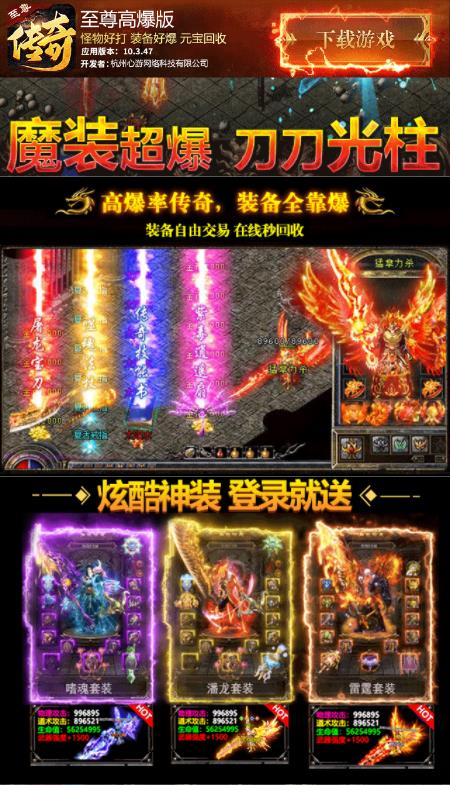 2、竞争更公平,杀怪爆装多。游戏内所有装备均通过打怪掉落,杜绝付费特权,真正实现人人平等。独特的装备评分系统,让玩家可以直观比较装备优劣,打造最适合自己的战斗风格。