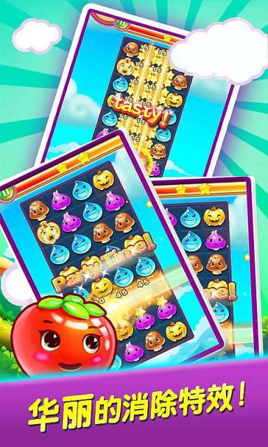 1、精美的图形:精美的图形设计,丰富的场景和动画效果营造出极具吸引力的世界,增加趣味性和视觉享受;从可爱的水果造型到梦幻的宝石设计,每个元素都经过精心打磨,让消除过程变成一场视觉盛宴。