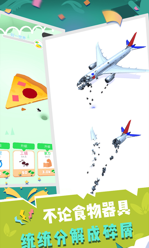 在《火蚁总动员》中,你将培养一支所向披靡的火蚁大军,它们能够搬运各种物品,从食物到器具统统不在话下。游戏采用了独特的分解系统,任何物品都能被分解成有用的资源碎屑。通过不断升级,你的蚁群规模会越来越大,运输效率也会显著提升。随着清扫速度的加快,你可以解锁更多精彩的世界继续冒险。游戏主打轻松休闲的养成体验,让你见证火蚁们从弱小到强大的成长历程。当火蚁群集体出动时,连树叶都能被啃食一空,看着它们把食物搬回家准备过冬的场景,既治愈又充满成就感。