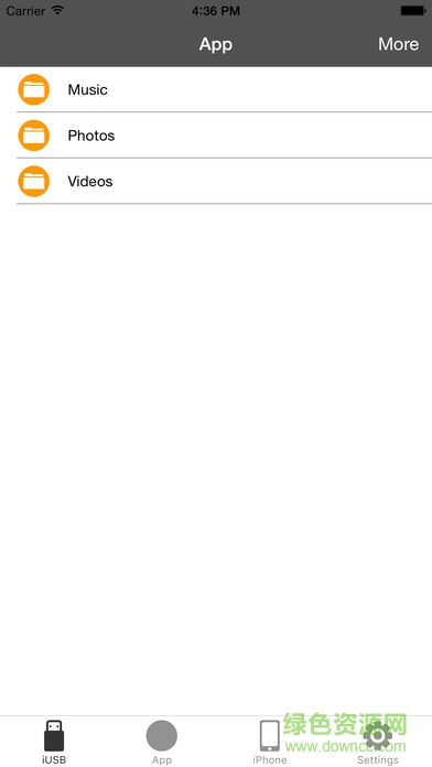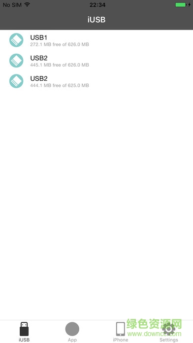2.界面导航说明:打开iUSBPro应用后,默认显示iUSB页面,这里会列出U盘中的所有文件。界面右侧设有四个功能按钮:iUSB显示U盘文件、App显示应用内存储文件、iPhone显示手机相册文件、设置提供详细信息和APP加密选项。每个功能区域都经过精心设计,确保操作直观便捷。