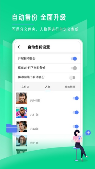 4、自动备份新增智能去重和场景识别功能,可区分工作文档、生活照等不同类别设置独立备份策略。支持按联系人关联备份,重要人物的照片可设置双重备份保障,确保珍贵影像永不丢失。