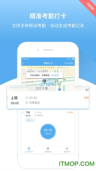 精准考勤打卡:支持GPS定位、WiFi识别等多种移动考勤方式,自动生成详细的考勤记录,并可导出报表。