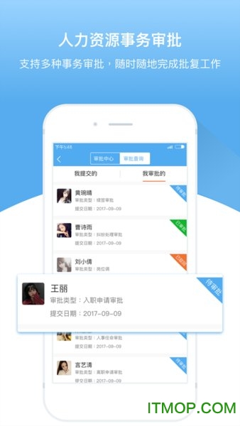 人力资源事务审批:支持请假、报销、调休等多种事务在线审批,管理者可随时随地完成批复工作。