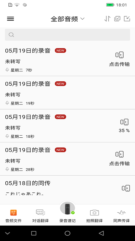 全语通助手APP不仅是一款专业的录音笔配套应用,更是您工作生活中的智能语言助手。它完美兼容市面上主流录音设备,提供设备管理、音频转写、多语言翻译等一站式解决方案。内置强大的语音识别引擎,可精准识别会议录音、访谈内容等复杂场景下的语音信息,并自动转换为可编辑文本。翻译功能覆盖全球112种语言,无论是商务文件还是日常对话,都能轻松应对。拍照翻译功能特别适合旅行场景,只需拍摄外文标识即可获取即时翻译结果,让跨国沟通无障碍。