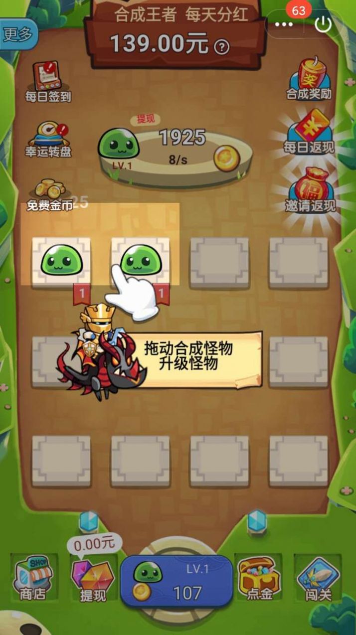 1、《王者合合合红包版》以卡通风格打造了一个充满想象力的合成世界,玩家可以收集购买各种造型可爱的怪物角色,通过合成创造全新的物种;