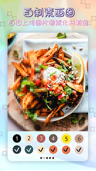 3、像素相机:拍自拍或者使用任何照片,都可以生成像素图片填色。这个创新功能可以将生活中的美好瞬间转化为艺术创作素材,让填色体验更加个性化。