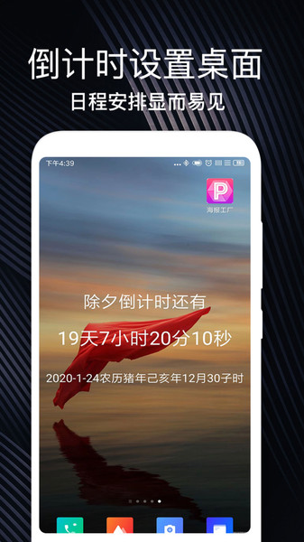 5.倒数设置桌面、把重要的日子,放置手机桌面。这样您无需打开应用,就能随时查看倒计时,非常方便实用。