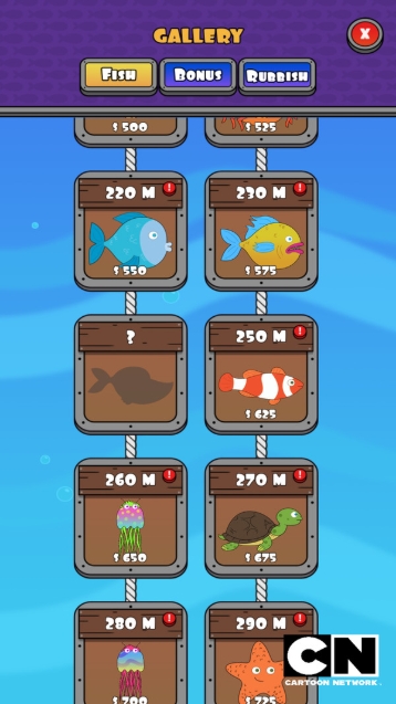 1、丰富的鱼类收集系统是游戏的一大特色,每条捕获的鱼都会转化为金币奖励,这些金币可以用来购买更好的装备。游戏中有上百种鱼类等待发现,从普通的小鱼到稀有的深海巨兽应有尽有。