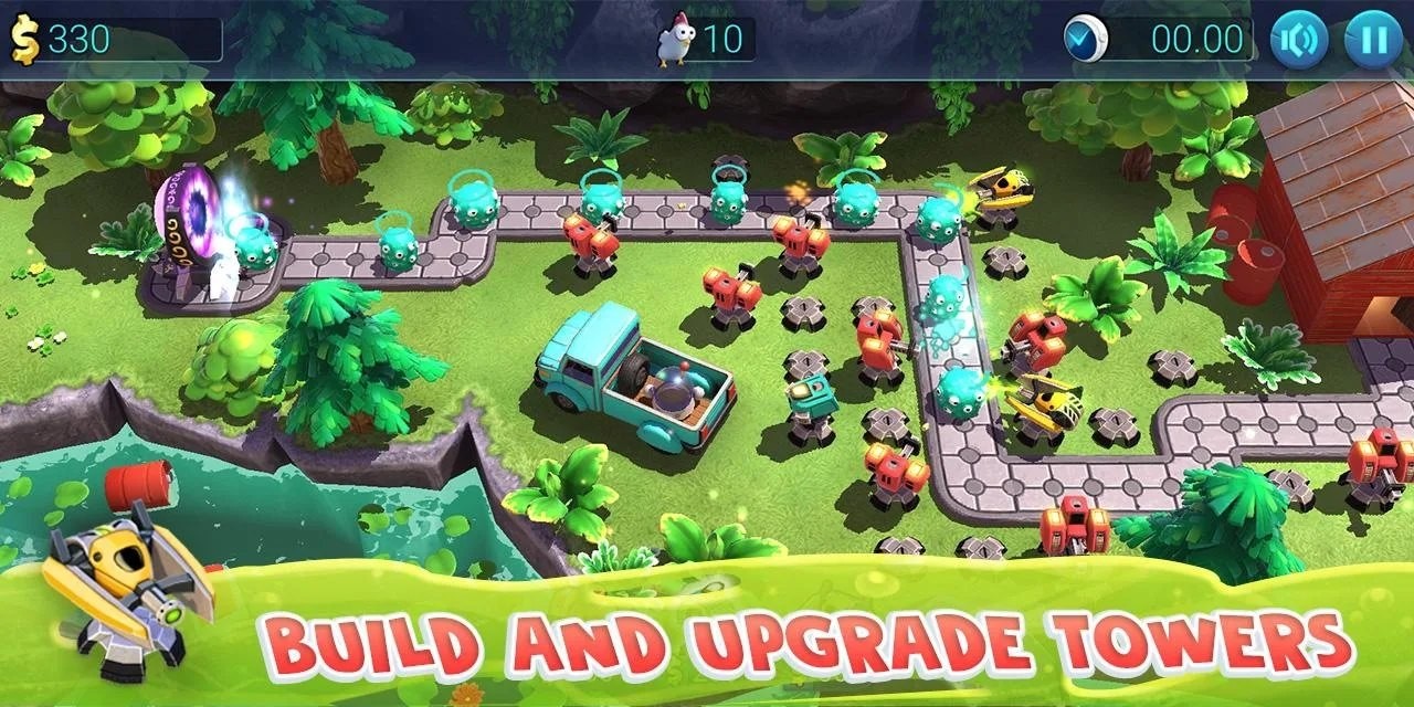 《鸡塔防御》是一款充满童趣与策略的3D塔防手游,玩家将化身部落酋长,在如画卷般的青山绿水间开启征服之旅。游戏采用清新明快的卡通画风,将传统塔防玩法与农场经营巧妙融合,你需要指挥萌萌的鸡士兵构筑防线,抵御一波波形态各异的敌人入侵。昼夜交替的战场设计带来双重挑战,白天要规划资源采集路线,夜晚则需应对更凶猛的怪物潮。通过解锁神秘士兵碎片、升级特色炮塔、搭配多重羁绊阵容,逐步扩张领地版图,体验从田园牧歌到帝国崛起的成长乐趣。