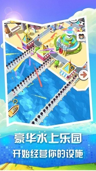 2.丰富的经济系统让你体验真实的商业经营,通过合理分配资金升级建筑设施,解锁更多有趣的水上项目。从简单的滑水道到惊险的垂直滑梯,各种设施都能让游客流连忘返。