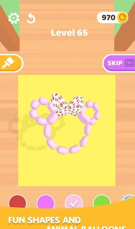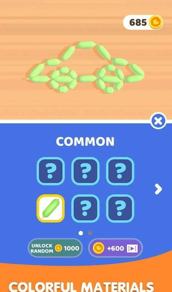 1、游戏提供超过200种造型模板,从基础的水果动物到复杂的机械模型,玩家可以自由选择创作方向。每个关卡会给出目标造型的轮廓提示,玩家需要通过拖拽、旋转等手势精准控制气球变形,系统会实时比对相似度并给出评分。