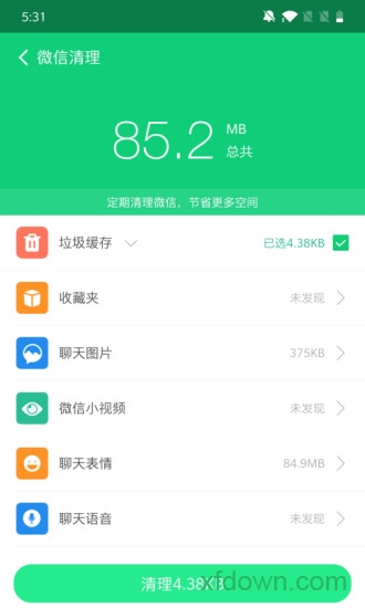 2.微信清理:针对微信聊天中产生的图片、视频、语音等文件进行深度清理,有效解决微信占用空间过大的问题,让聊天更加流畅无阻。