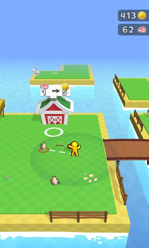 作为一款休闲娱乐类游戏,《艺术》为玩家提供了独特的狩猎体验。玩家将操控可爱的人偶角色,使用弓弩在岛屿上猎捕各种动物。成功狩猎后,你可以收集动物掉落的肉类资源,这些资源可以在游戏内的商店兑换金币。获得的金币用途广泛:不仅能扩大你的狩猎领地范围,还能升级武器提升攻击力。此外,游戏还允许你雇佣帮手协助狩猎,让资源收集变得更加高效。随着游戏进程的推进,你会发现更多有趣的狩猎玩法和挑战。